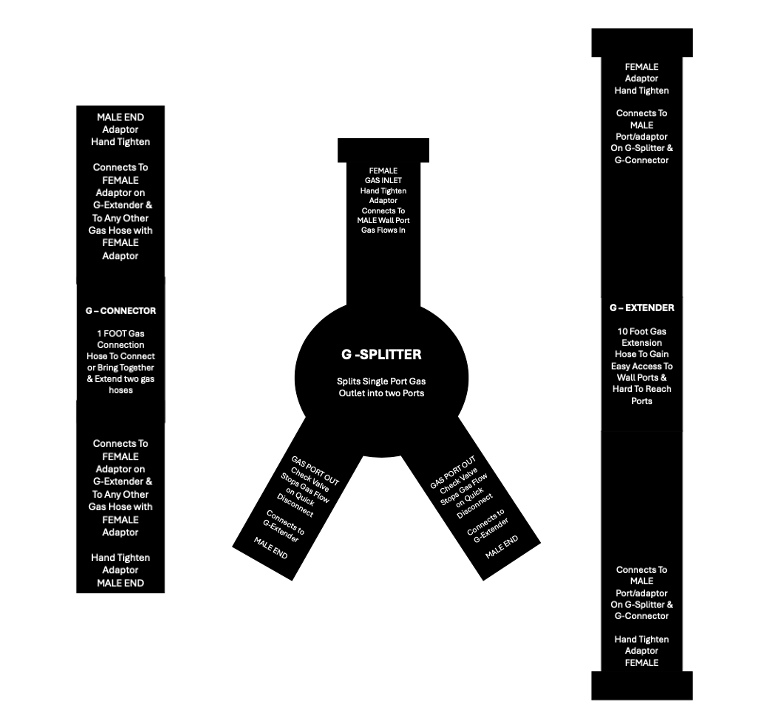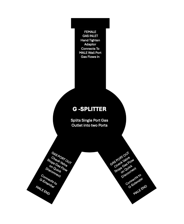 - Connects to the G-Splitter or G-Connector, and other gas ports.