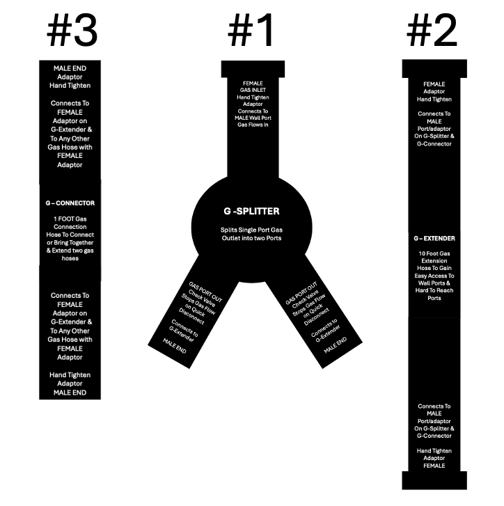 G-Extender: - Function: A 10-foot extension hose for easier access to gas ports.